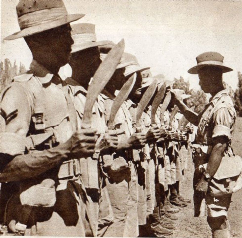| A vintage photo of Gorkha Regiment - Khukri inspection |